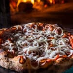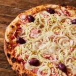 linguiça calabresa, cebola, azeitona e orégano, borda vulcão cheddar